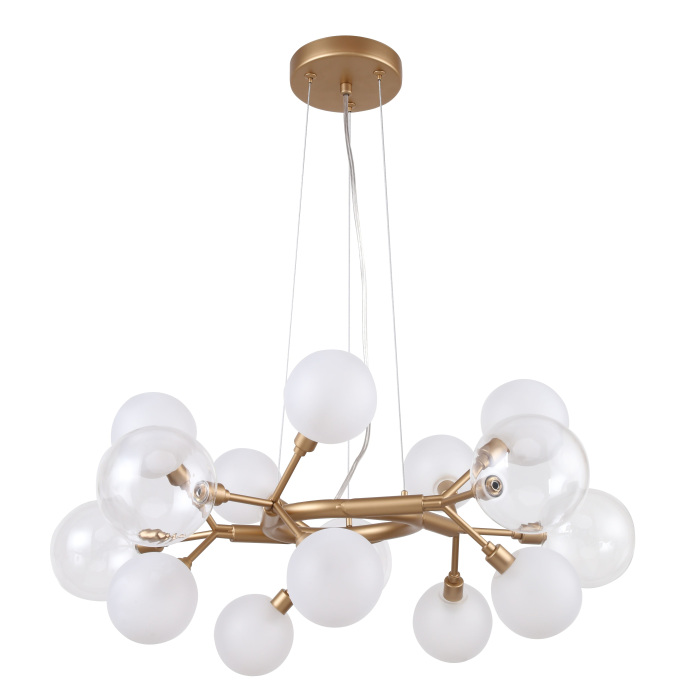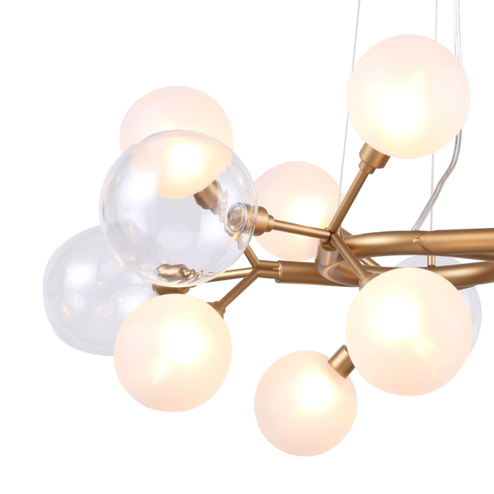 Осветительный прибор выполнен в стиле Джапанди. Применяются лампы с цоколем G9 мощностью 400 Вт, количеством 10 шт. Цвет модели 2515-10P: Золотой.