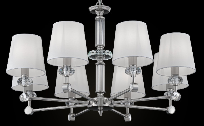 Осветительный прибор разработан в стиле Американский. Подходят лампочки с цоколем E14 мощностью 320 Вт, в количестве 8 шт. Основной цвет модели MOD018PL-08CH: Хром.