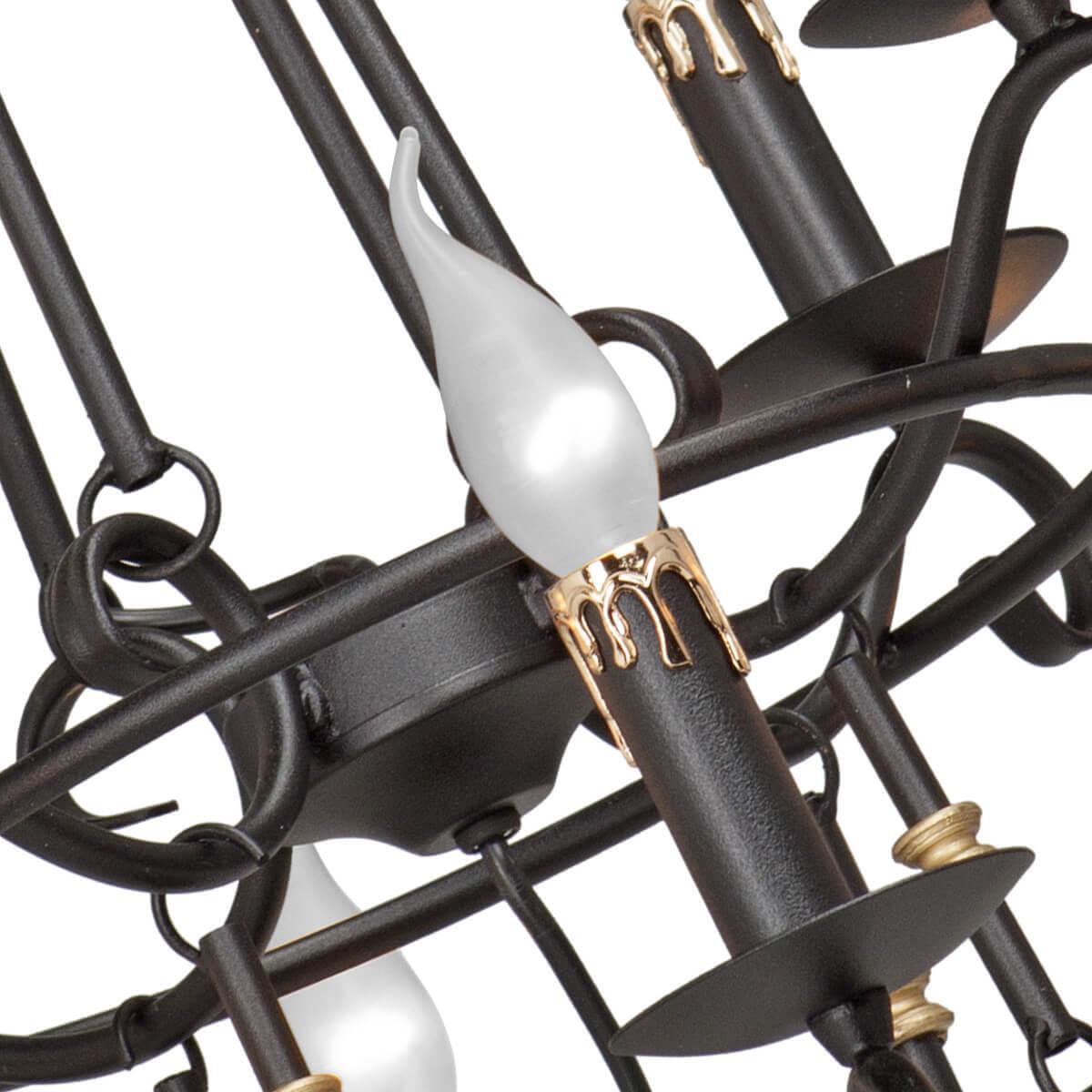 Осветительный прибор сделан в стиле Винтажный. Задействуются лампы цоколя E14 мощностью 720 Вт, количеством 12 ед. Основной цвет модели V1039/8+4: Чёрный.