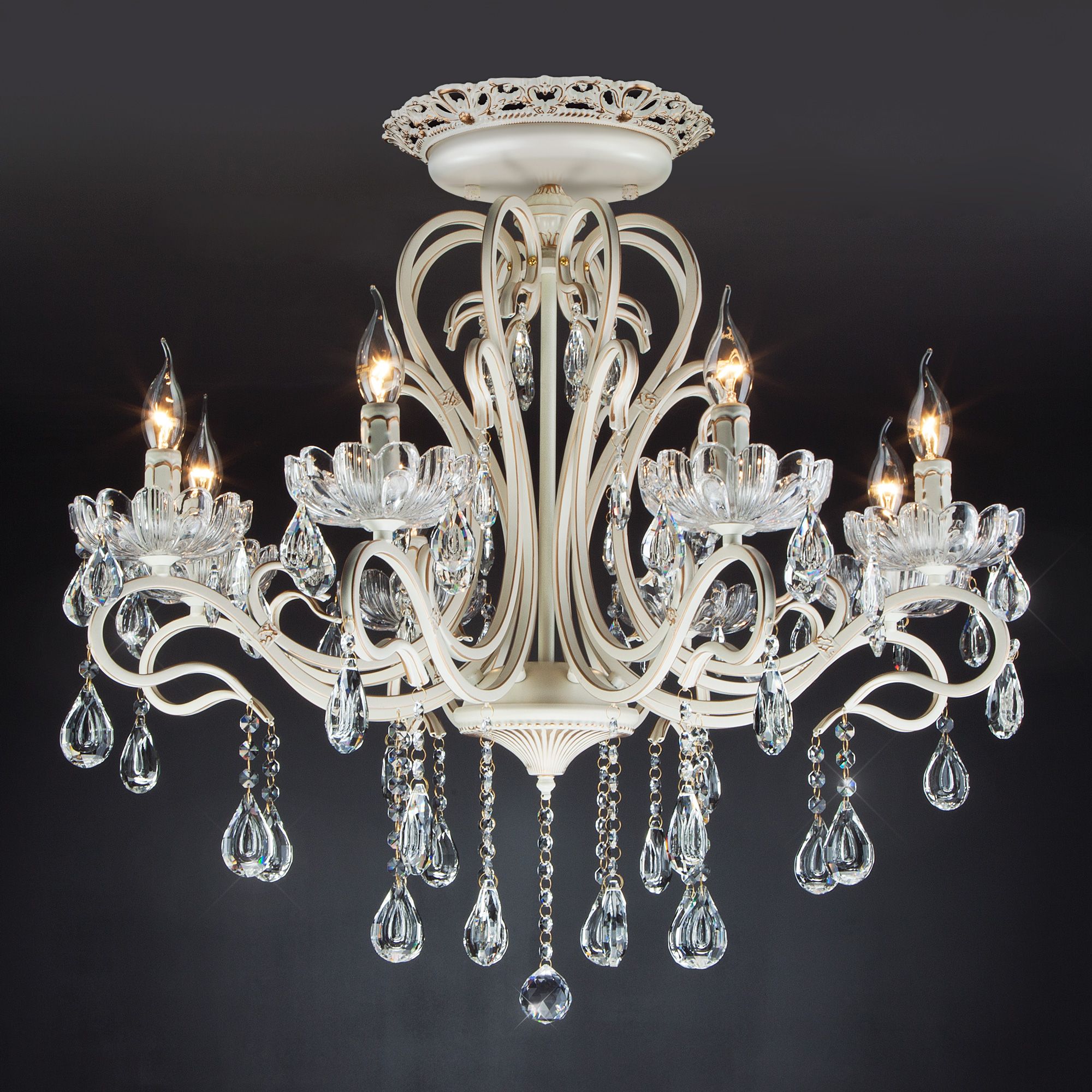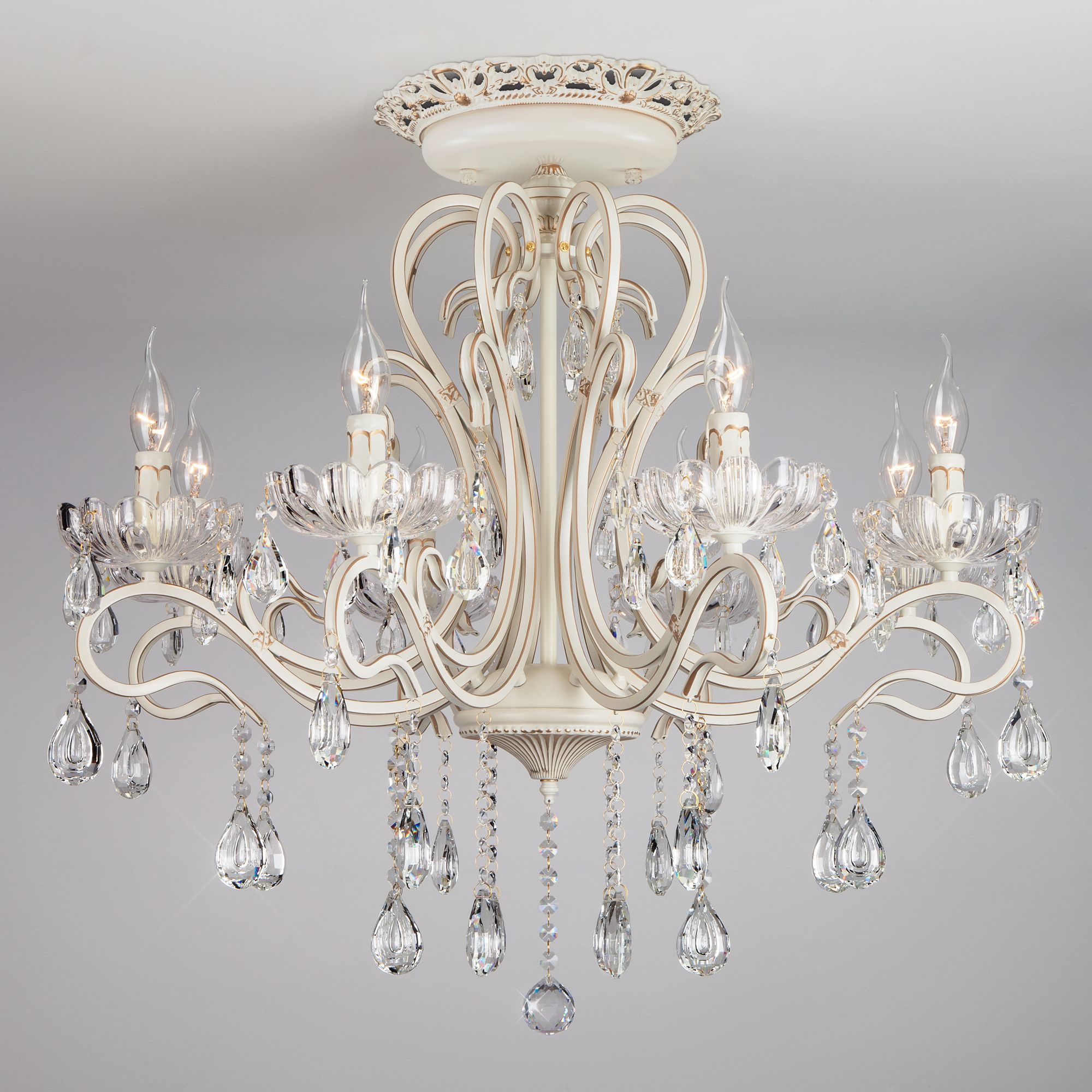 Люстра с хрусталем Eurosvet Etna 00000059679 12205/8 белый Strotskis белая, на штанге, рожковая, в классическом стиле