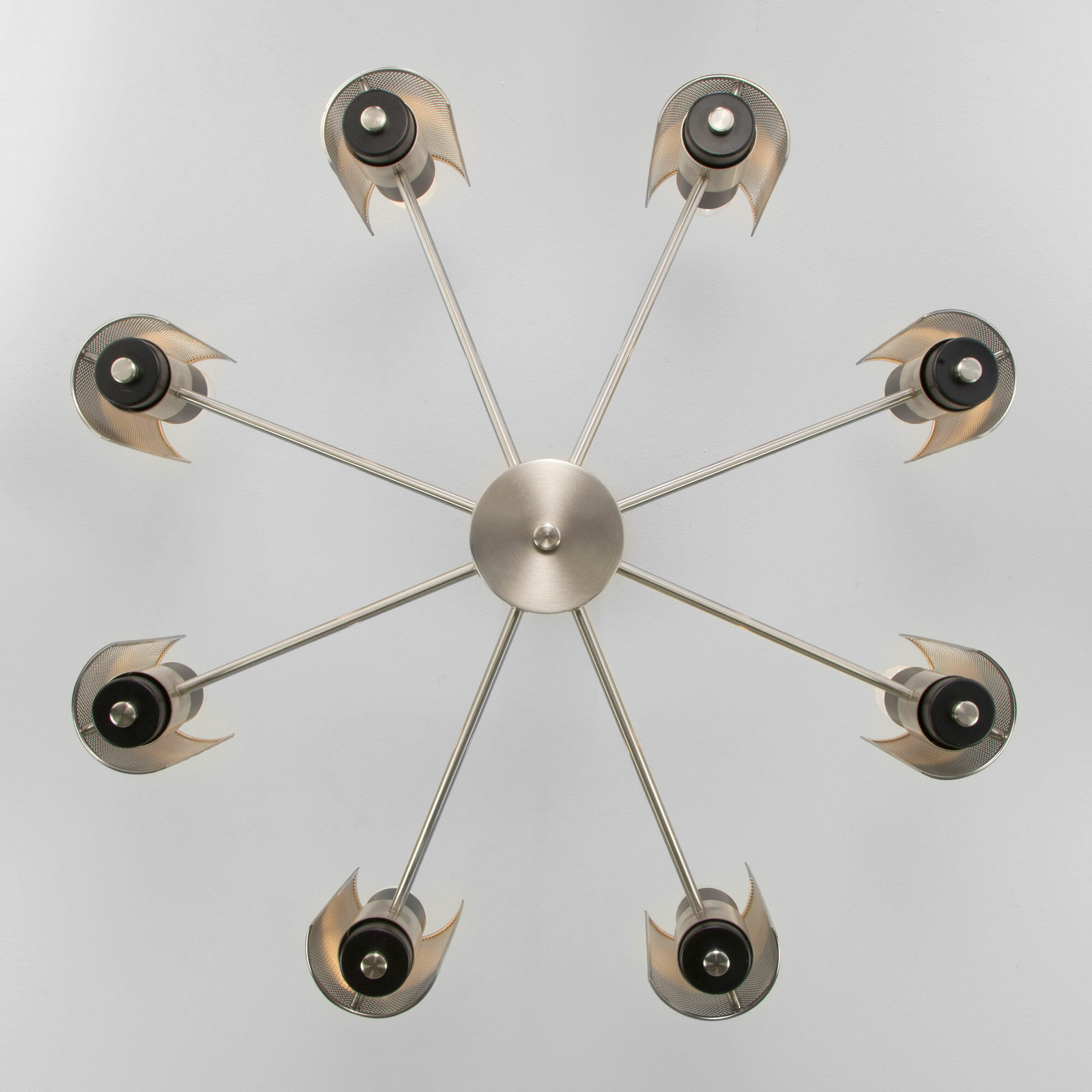 Осветительный прибор сделан в стиле Современный. Подходят лампы с цоколем E14 мощностью 60 Вт, в количестве 8 ед. Цвет модели a057948: Никель.