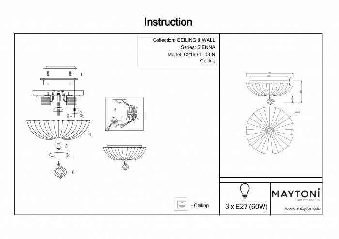 Потолочный светильник C216-CL-03-N – это продукция бренда Maytoni, относящаяся к коллекции Ceiling & Wall. Габаритные параметры: высота 180 мм, диаметр 400 мм. Светильники Maytoni C216-CL-03-N выполнены из высококачественных и прочных материалов: металл, плафон - стекло.