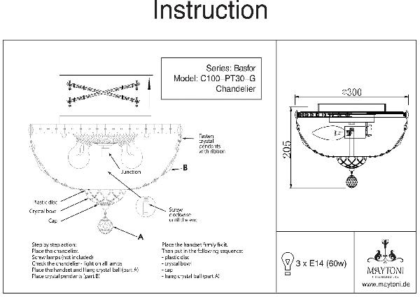 Осветительный прибор выполнен в стиле Классический. Применяются лампы с цоколем E14 мощностью 60W Вт, количеством 3 шт. Цвет модели DIA100-CL-03-G: Золотой.