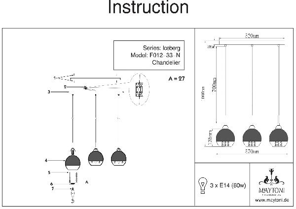 Осветительный прибор создан в стиле Контемпорари. Подходят лампы с цоколем E14 мощностью 60W Вт, количеством 3 шт. Цвет модели P012-PL-03-N: Никель.