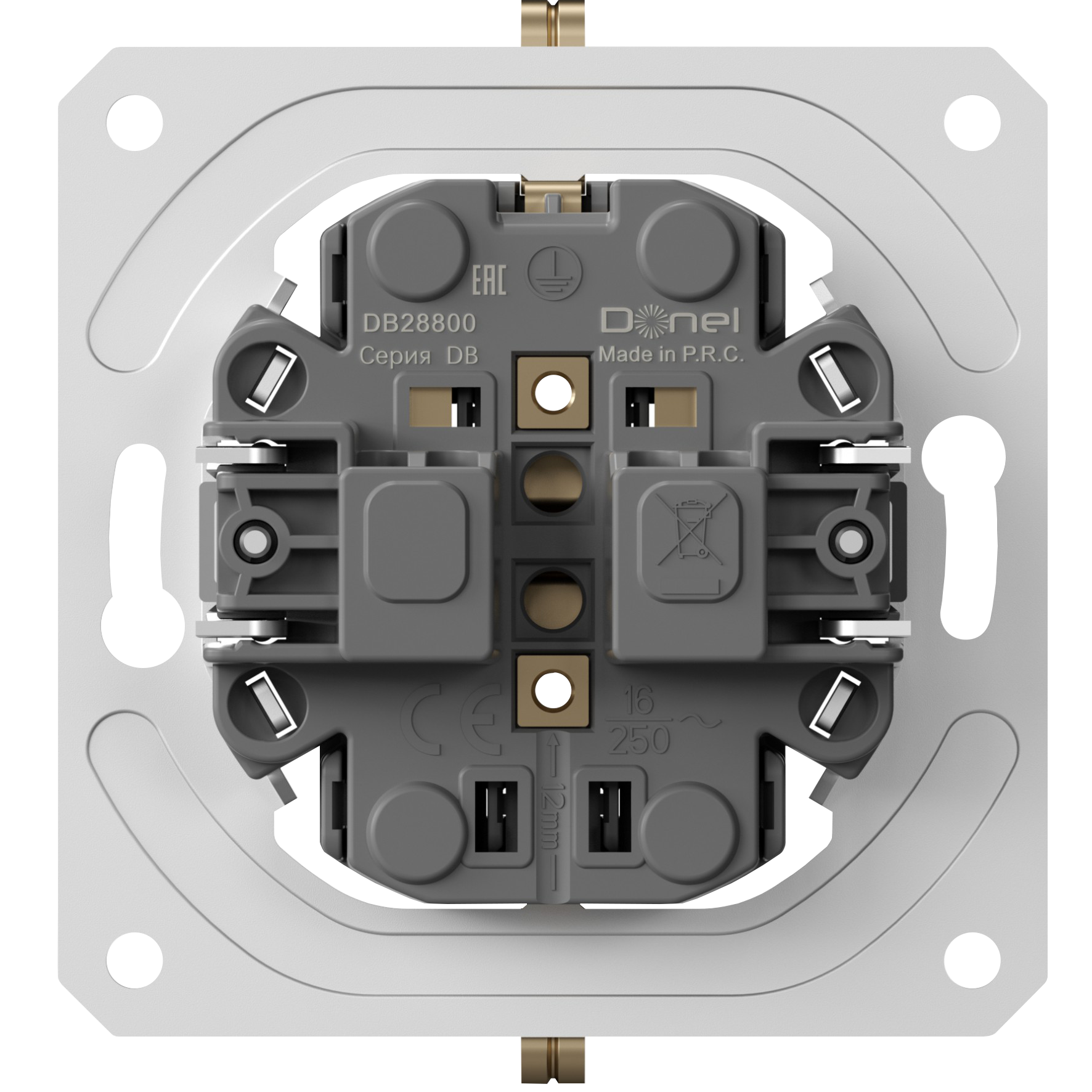 Механизм розетки двойной Schuko с заземлением 16А 250 В~ на винтах, Donel DB28800