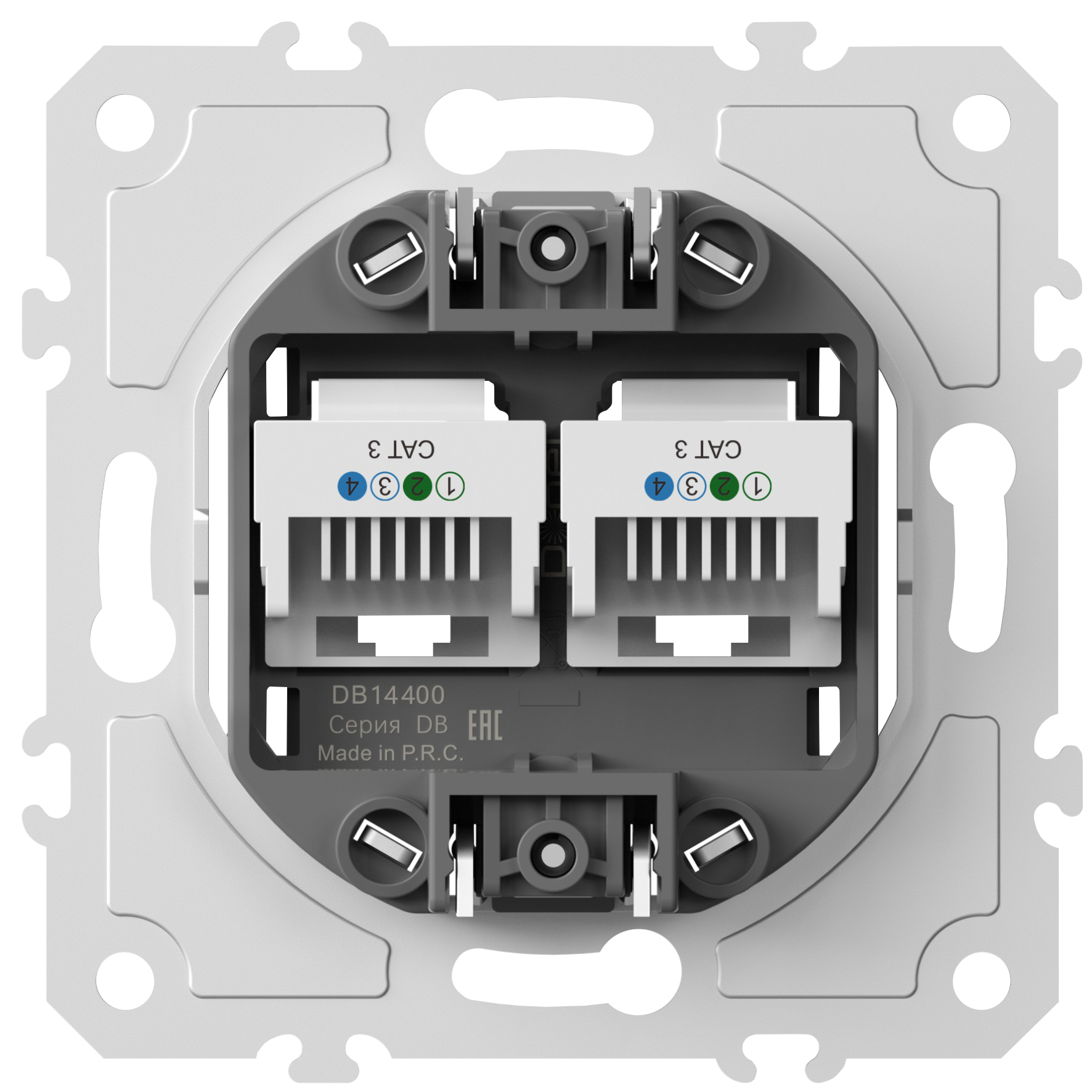 Механизм розетки RJ11 + RJ11 (двойная) cat.3/ClassE-4/4, Donel DB14400