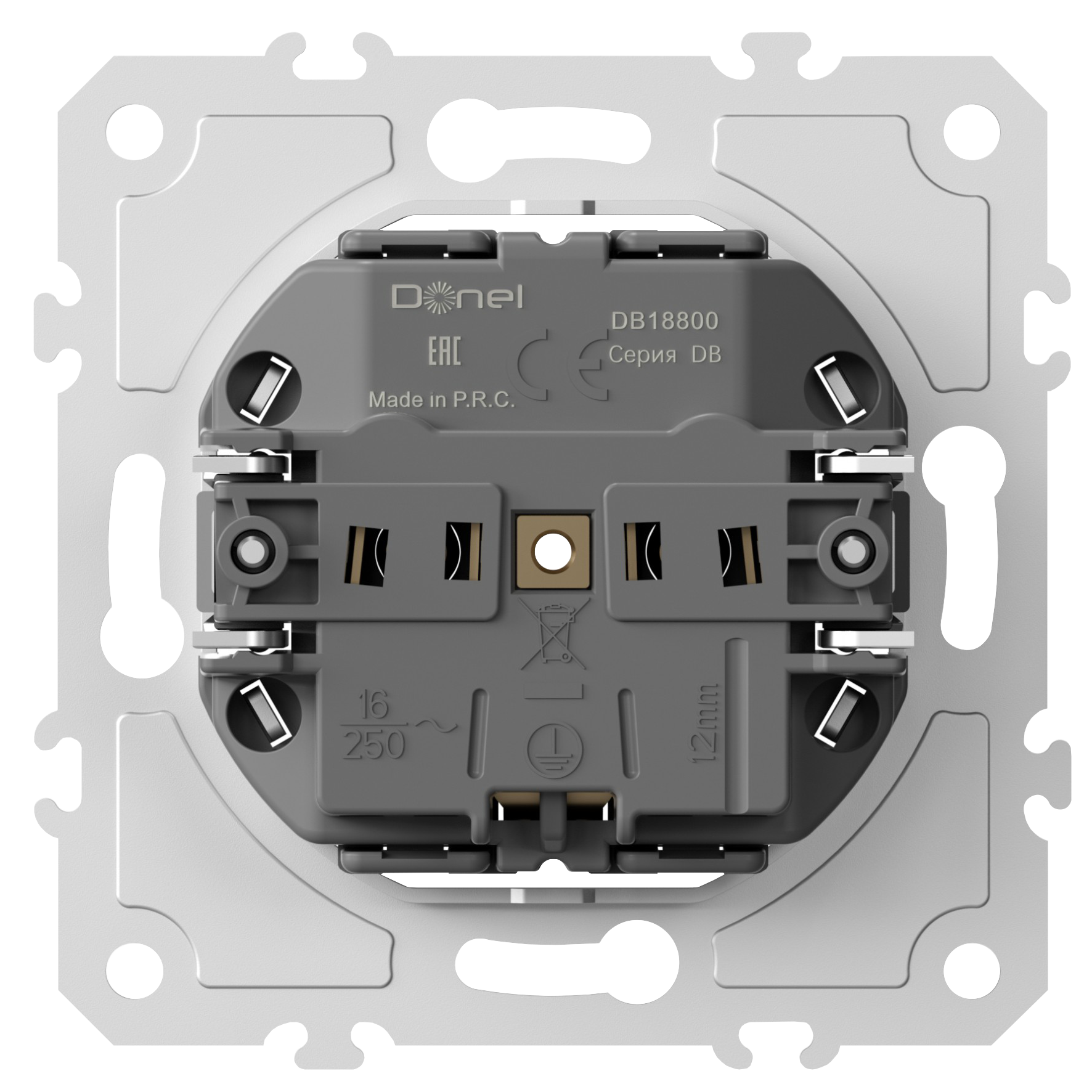 Механизм розетки Schuko с заземлением 16А 250 В~ на винтах, Donel DB18800