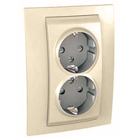 MGU23.067.25D Розетка двойная с з\к со шторками с рамкой бежевый Schneider Electric