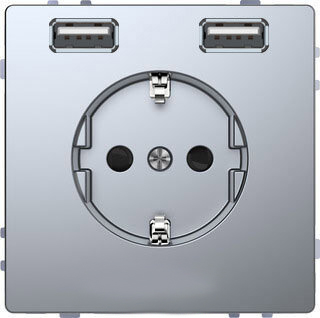 MTN2366-6036 D-life Розетка USB A+A, 2.4А с USB type-A 5V, Электр. с USB, двойная, нержавеющая сталь Merten