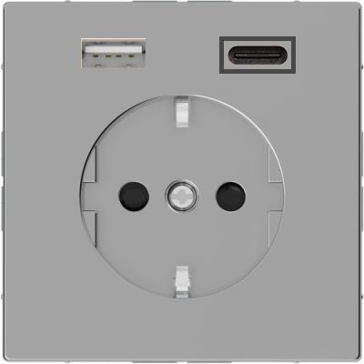 MTN2367-6036 D-life Розетка USB A+C, 2.4А с USB type-C 5V, USB type-A 5V, Электр. с USB, двойная нержавеющая сталь Merten