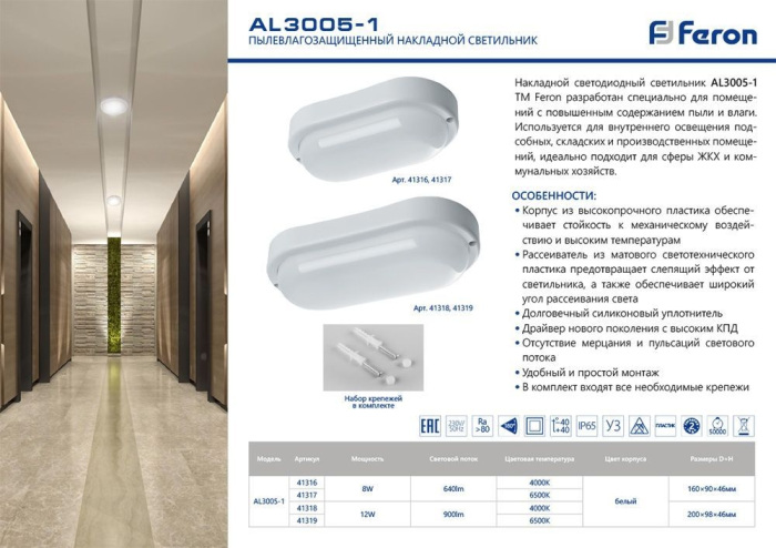 Настенно-потолочный светильник 41319 производится брендом Feron. Габаритные параметры: длина 200 мм, высота 46 мм, ширина 98 мм. Светильники Feron 41319 созданы с применением высококачественных и прочных материалов: пластик, плафон - Пластик.
