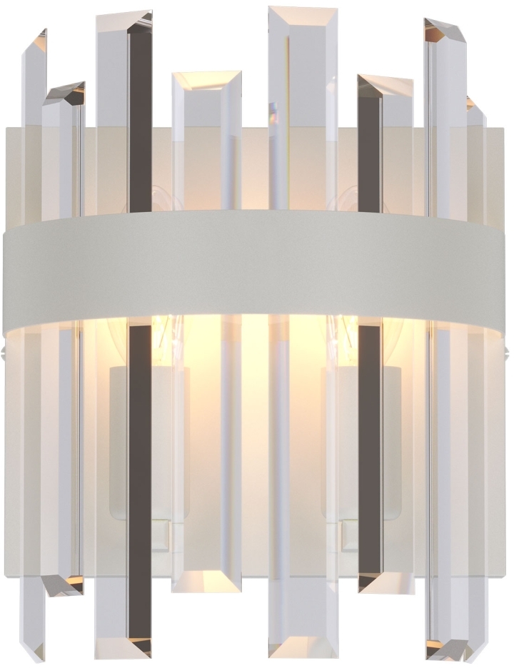 Осветительный прибор сделан в стиле Модерн. Задействуются лампы цоколя E14 мощностью 80 Вт, количеством 2 ед.