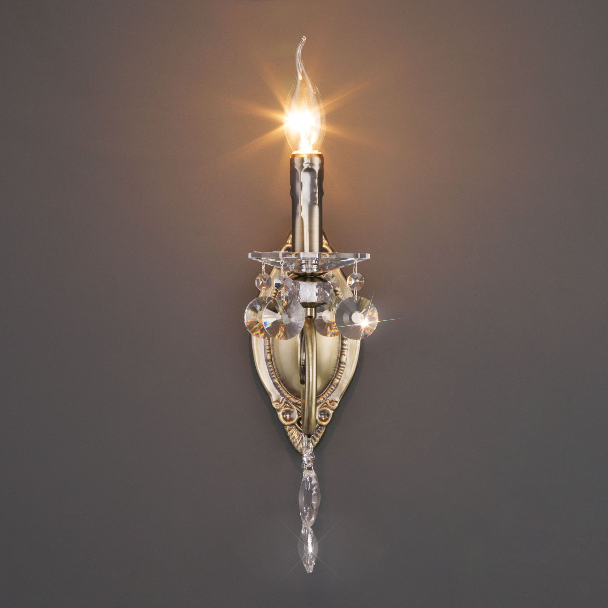 Настенный светильник Eurosvet Ravenna 10104/1 античная бронза/прозрачный хрусталь Strotskis a045536