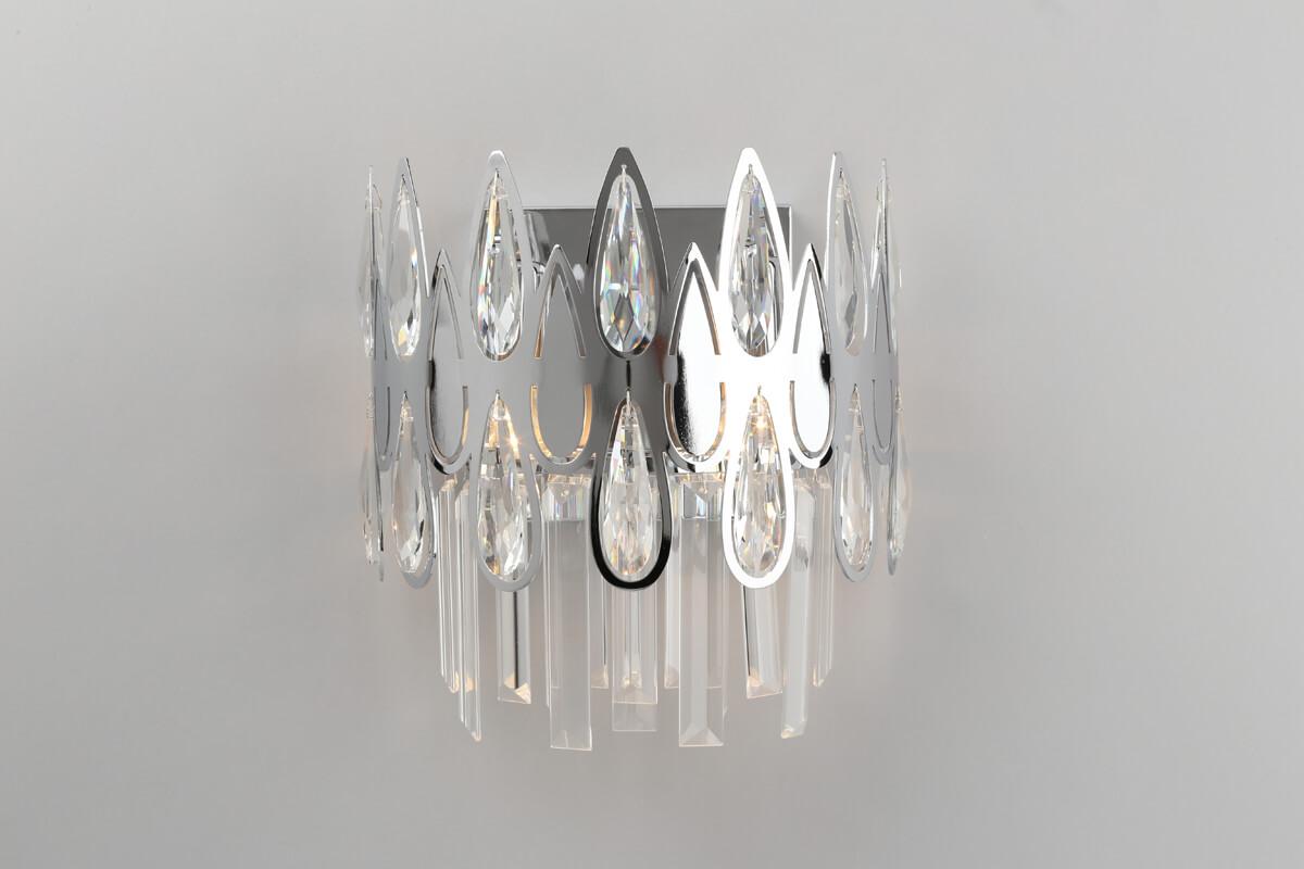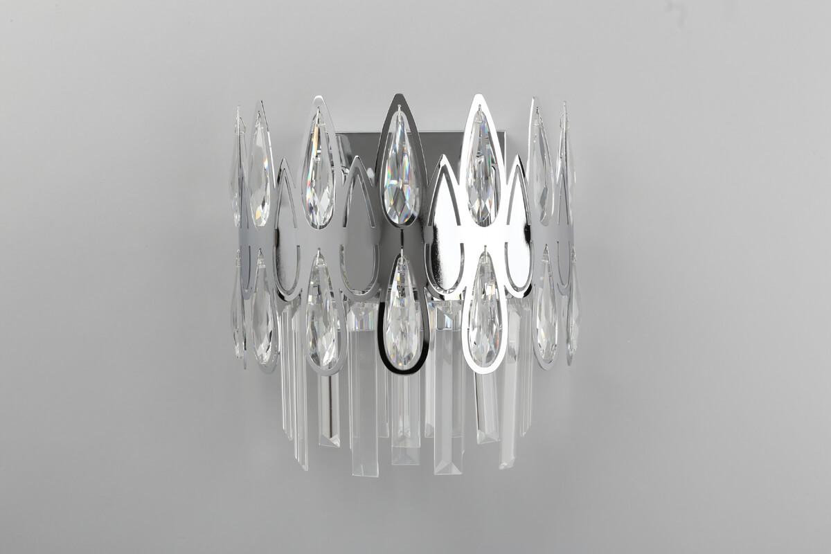 Осветительный прибор разработан в стиле Классический. Применяются лампы с цоколем E14 мощностью 80 Вт, количеством 2 шт. Цвет модели OML-71701-02: Хром.
