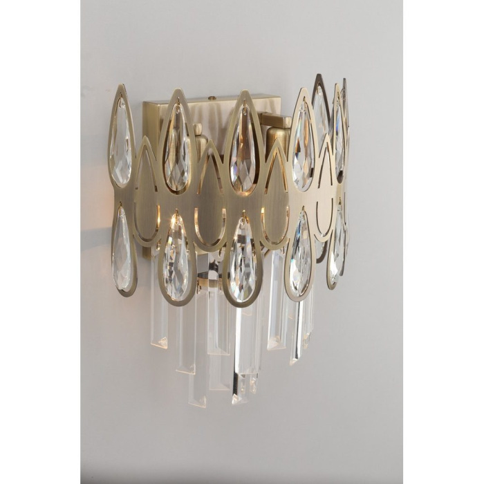 Осветительный прибор сделан в стиле Классический. Задействуются лампы с цоколем E14 мощностью 80 Вт, в количестве 2 ед. Цвет модели OML-71711-02: Золотой.