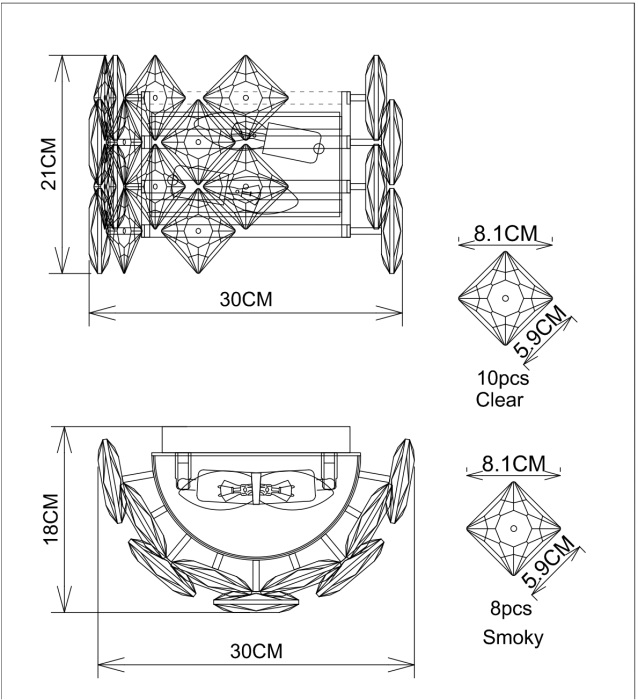 Осветительный прибор сделан в стиле Модерн. Задействуются лампы с цоколем E14 мощностью 80 Вт, в количестве 2 ед. Цвет модели 7204/17 AP-2: Прозрачный,Серый.