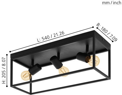 Осветительный прибор сделан в стиле Лофт. Задействуются лампочки с цоколем E27 мощностью 120 Вт, количеством 3 ед. Основной цвет модели 98333: Чёрный.