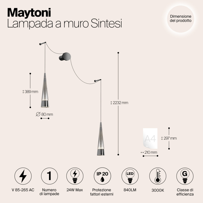 P090WL-L24CH3K – это продукция бренда Maytoni, которая относится к коллекции Sintesi. Светильники Maytoni P090WL-L24CH3K изготовлены с использованием высококачественных и прочных материалов, таких как: Металл,Стекло, плафон - стекло.