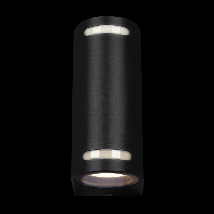 Осветительный прибор создан в стиле Модерн. Применяются лампы с цоколем GU10 мощностью 80 Вт, количеством 2 шт. Цвет модели 100012/B: Чёрный.