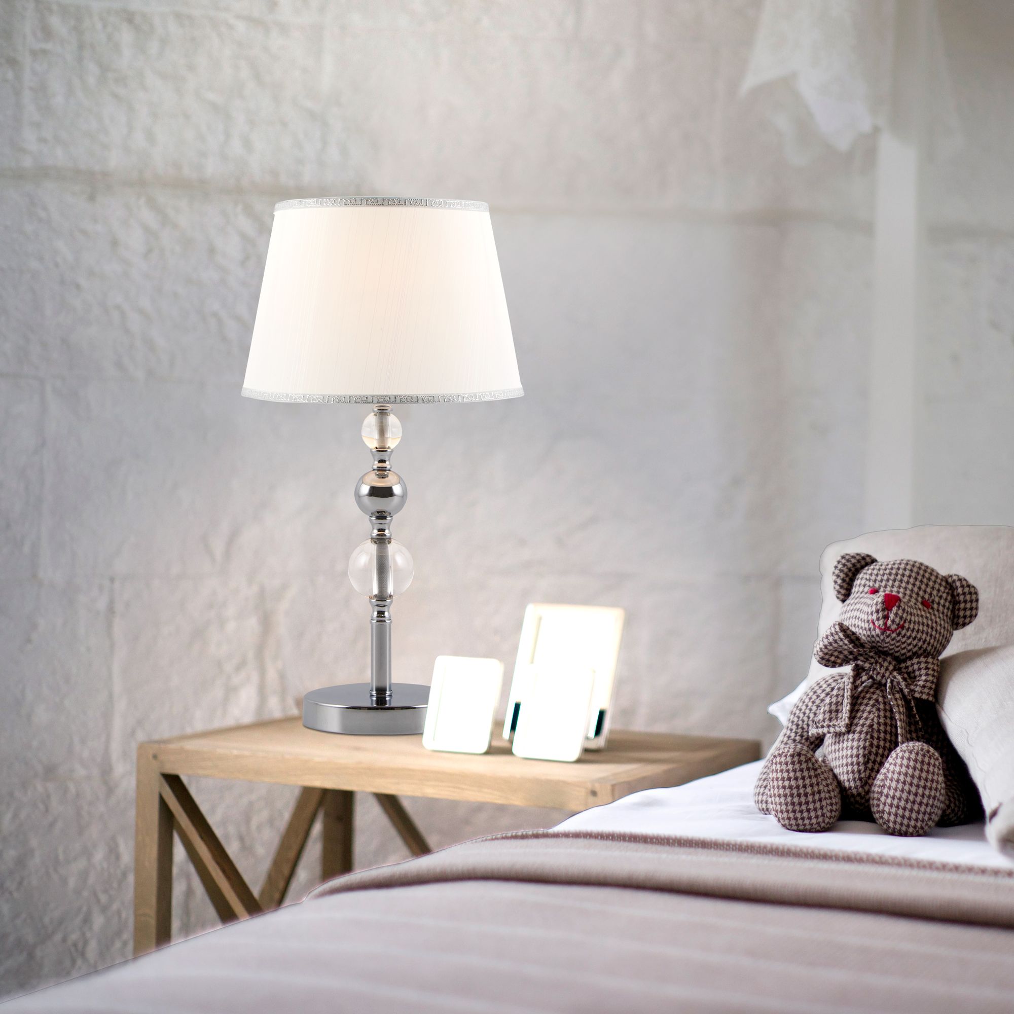 Настольная лампа с абажуром Eurosvet Sortino a045196 01071/1 хром хромированная, в кабинет, тканевая, в классическом стиле