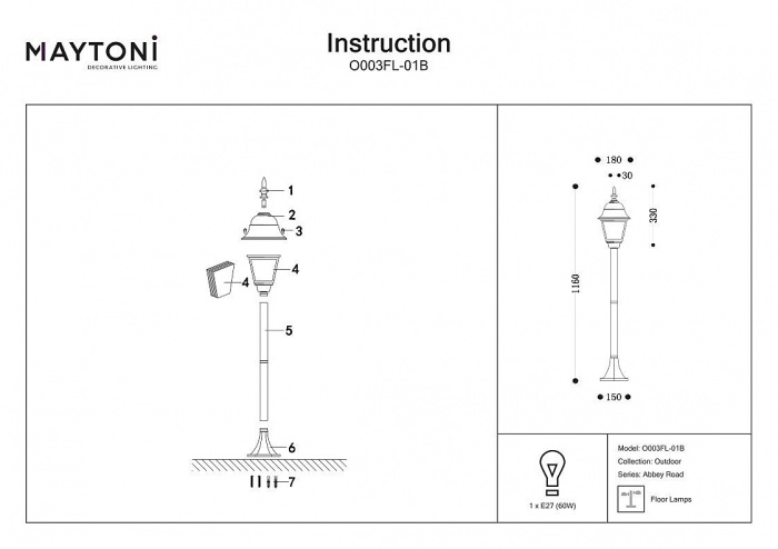 Наземный фонарь Abbey Road O003FL-01B Maytoni