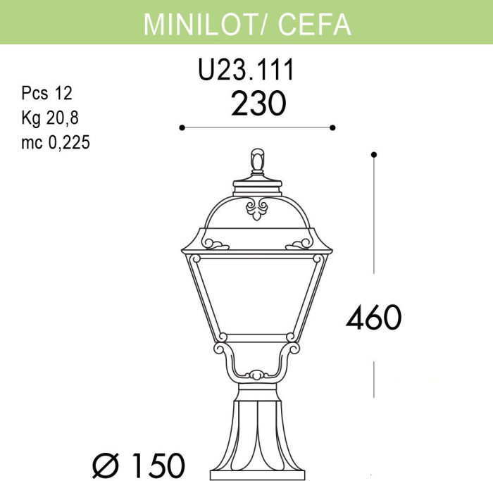 Уличный столб U23.111.000.BYF1R – это продукция бренда Fumagalli, относящаяся к коллекции Cefa. Габаритные параметры: высота 460 мм, диаметр 230 мм. Уличное освещение Fumagalli U23.111.000.BYF1R выполнены из высококачественных и прочных материалов: Пластиковые,Полимер, плафон - Оргстекло,Стеклянные.