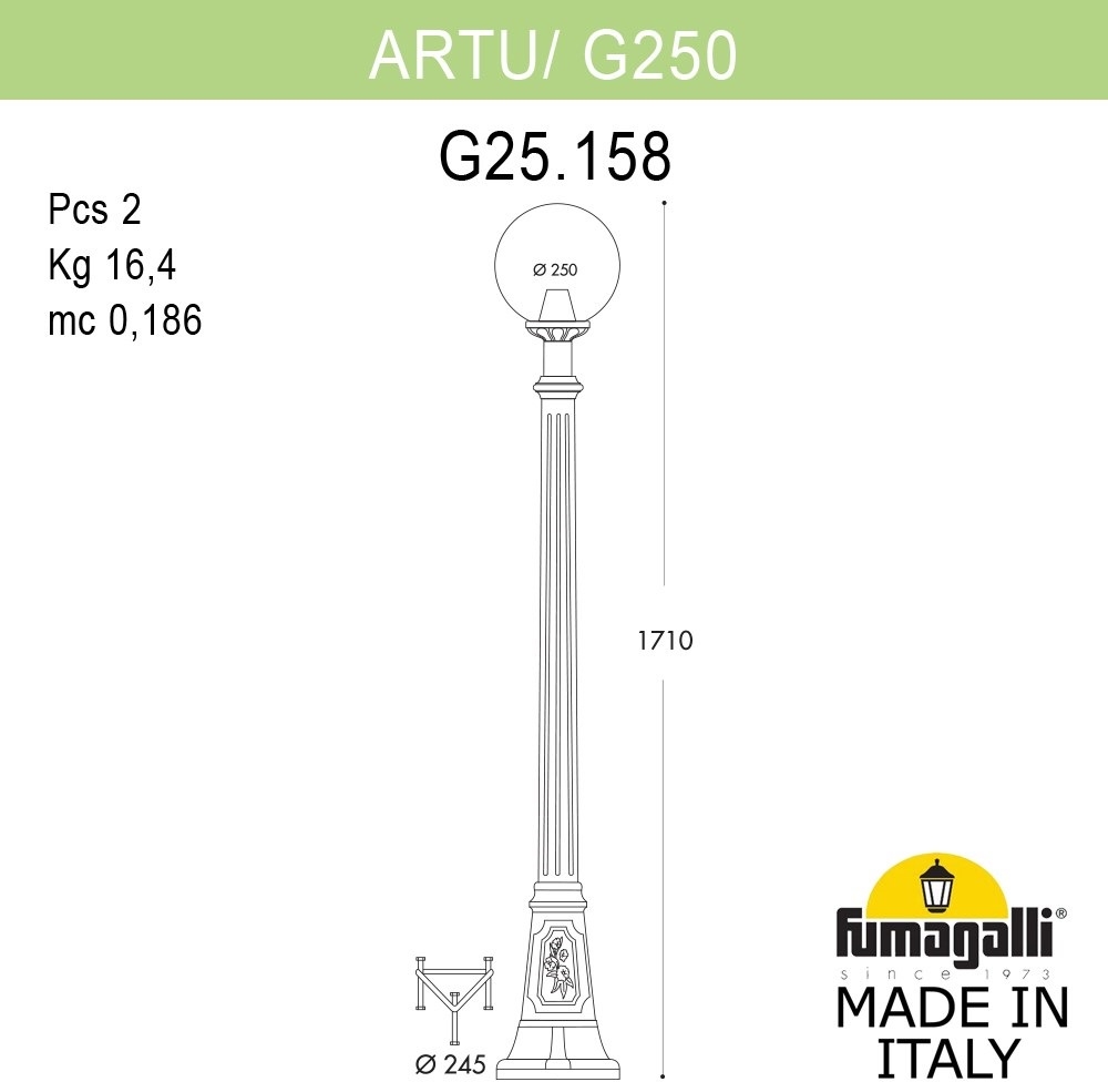 Уличный столб G25.158.000.VXF1R – это продукция бренда Fumagalli, которая относится к коллекции GLOBE 250. Габаритные размеры: высота 1710 мм. Уличное освещение Fumagalli G25.158.000.VXF1R произведены из высококачественных и прочных материалов, таких как: Пластиковые,Полимер, плафон - Пластиковые,Полиметилметакрилат.