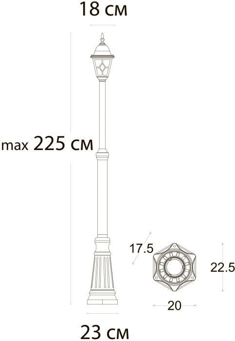 Уличный столб A1542PA-1BN изготавливается брендом Arte Lamp, относящаяся к коллекции Madrid. Габаритные размеры: длина 180 мм, высота 2250 мм, ширина 180 мм. Уличное освещение Arte Lamp A1542PA-1BN произведены из высококачественных и прочных материалов: металл, плафон - стекло.