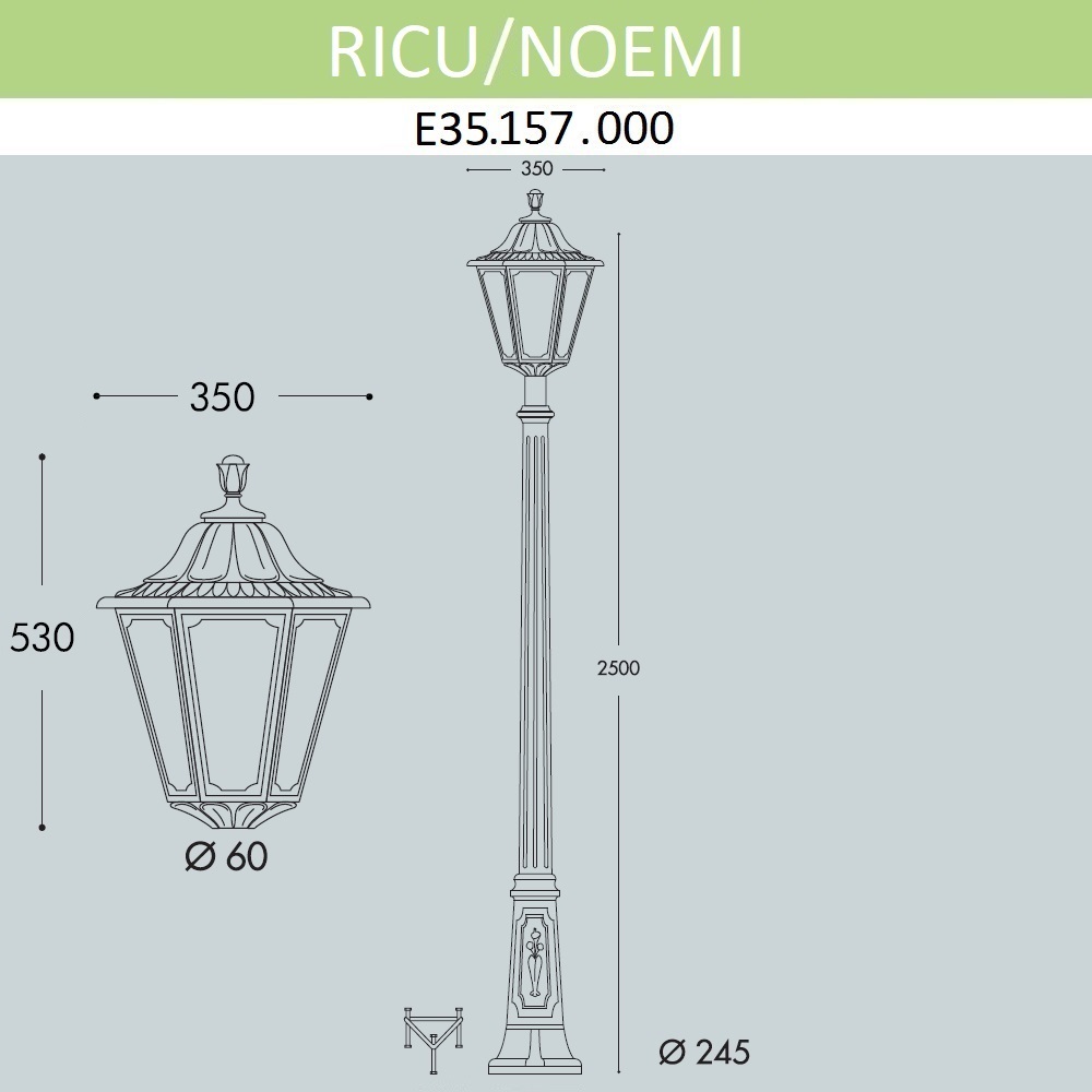 Уличный столб E35.157.000.AXH27 от бренда Fumagalli из коллекции Noemi. Размеры: высота 2500 мм, диаметр 350 мм. Уличное освещение Fumagalli E35.157.000.AXH27 созданы с применением высококачественных и прочных материалов, таких как: Полимер, плафон - Полиметилметакрилат.