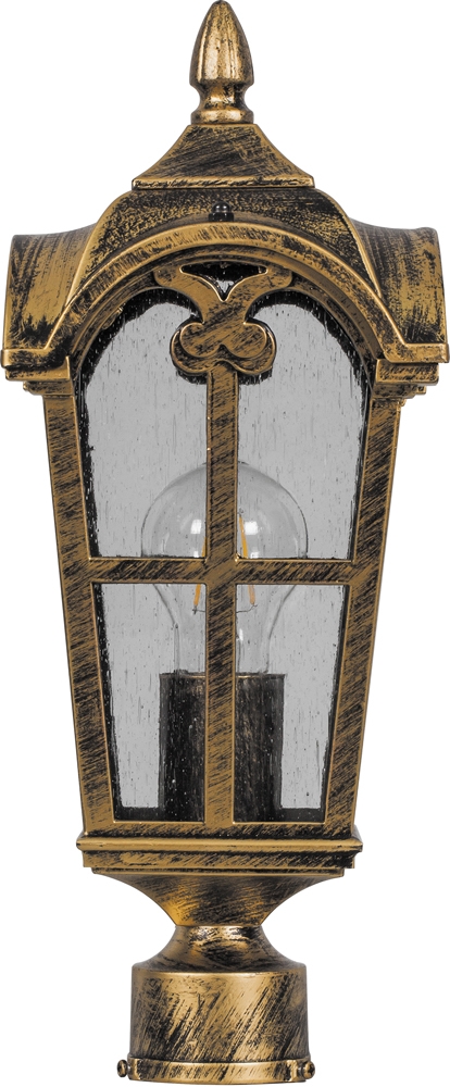 Осветительный прибор выполнен в стиле Замковый. Задействуются лампочки цоколя E27, количеством 1 шт. Цвет модели 11296: Золотой.