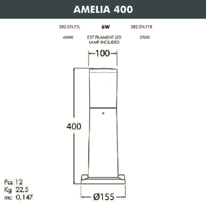 Наземный светильник Amelia DR2.574.000.LYF1R Fumagalli