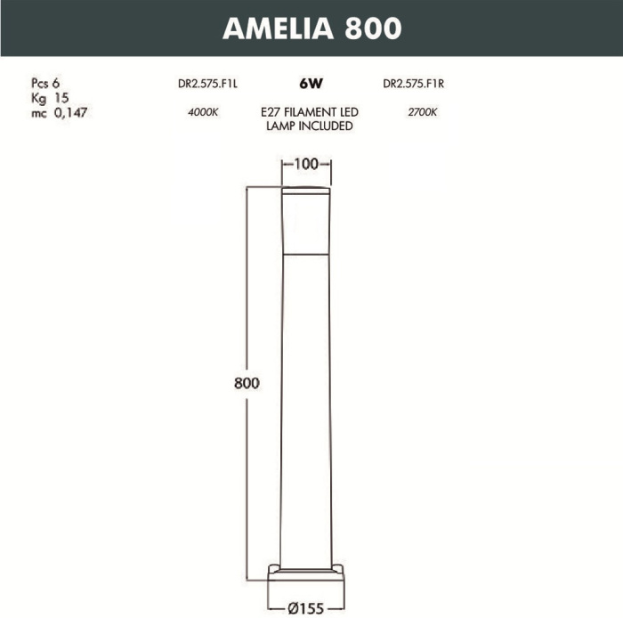 Наземный светильник Amelia DR2.575.000.AYF1R Fumagalli