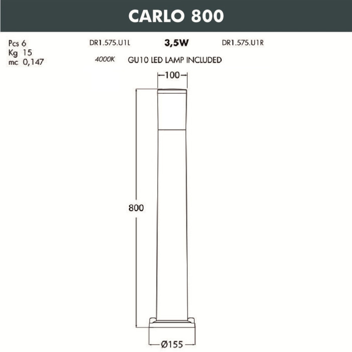 Наземный светильник Carlo DR1.575.000.WXU1L Fumagalli
