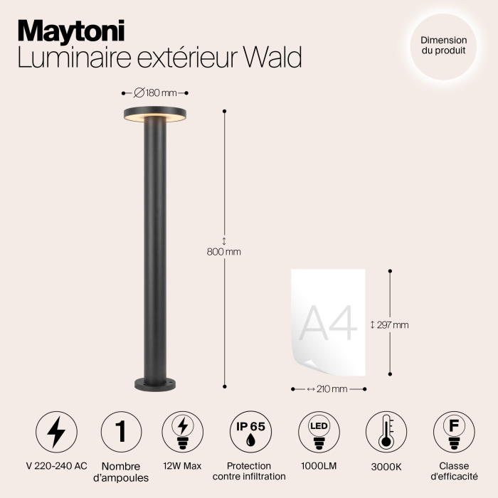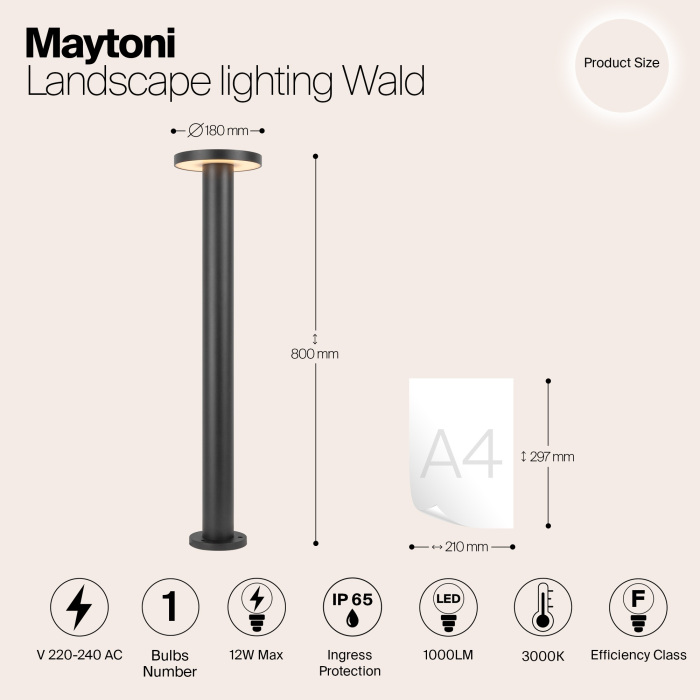 Уличный столб O420FL-L12GF1 производится брендом Maytoni, относящаяся к коллекции Wald. Размеры: высота 800 мм, диаметр 180 мм. Уличное освещение Maytoni O420FL-L12GF1 выполнены из высококачественных и прочных материалов: металл.