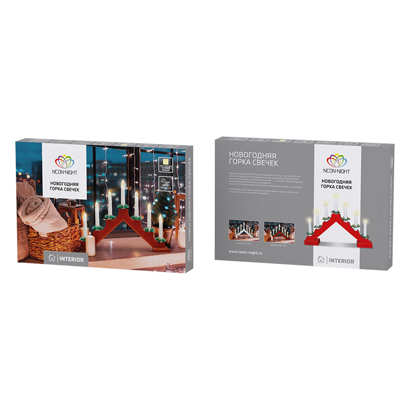 Новогодняя горка 7 свечек, цвет корпуса: Красный, цвет свечения: ТЕПЛЫЙ БЕЛЫЙ NEON-NIGHT 501-082 соответствует параметрам:, мощность 0,5 Вт Вт, влагозащита IP20.