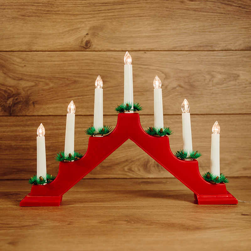 Новогодняя горка 7 свечек, цвет корпуса: Красный, цвет свечения: ТЕПЛЫЙ БЕЛЫЙ NEON-NIGHT 501-082
