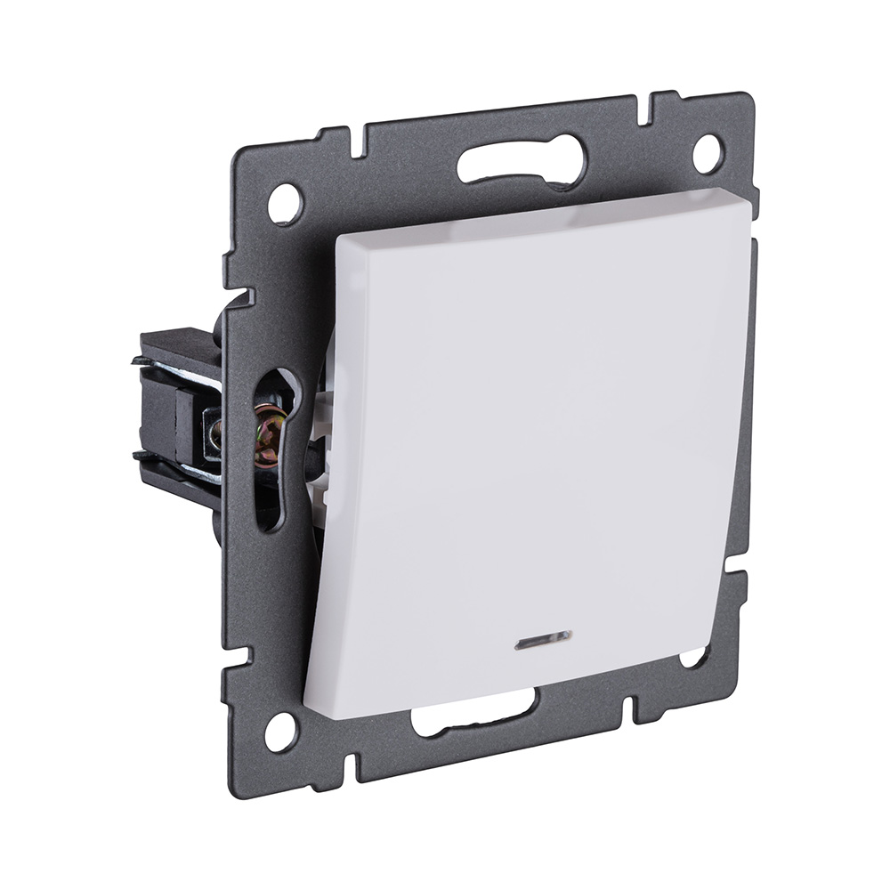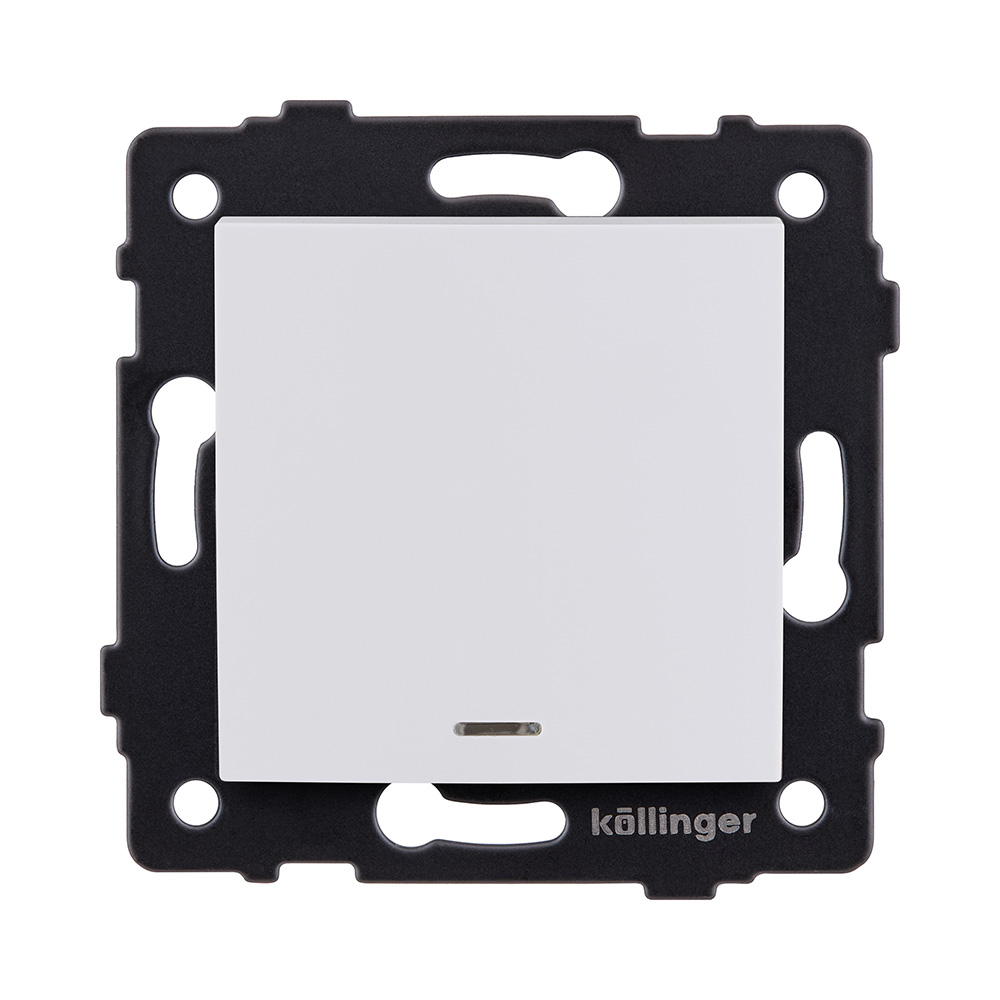 Одноклавишный перекрестный выключатель 10А/250В с подсветкой, изогнутой формы, белый матовый Kollinger для Reflex, Aspekt, Eleganz REA-R-015WM