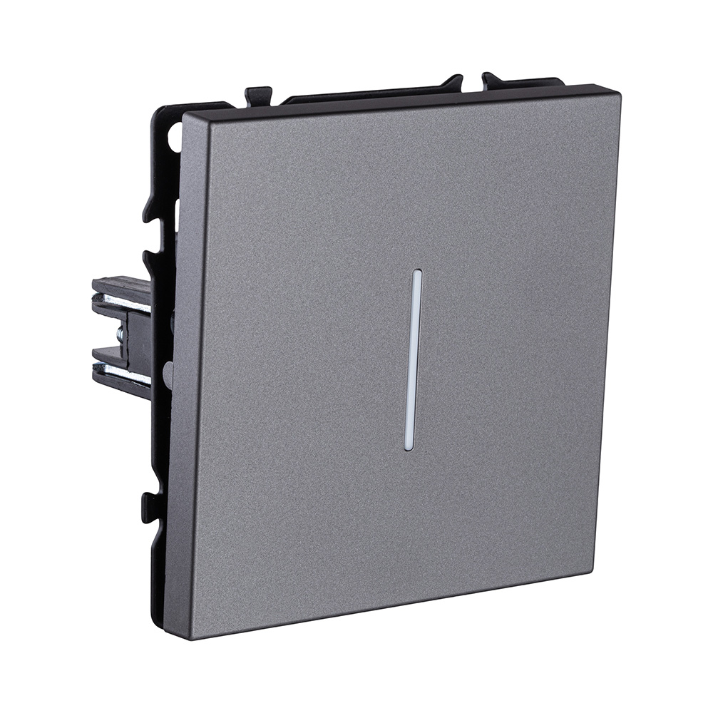 Одноклавишный проходной выключатель 10А/250В с подсветкой серый Kollinger Eclipse EC-008GY