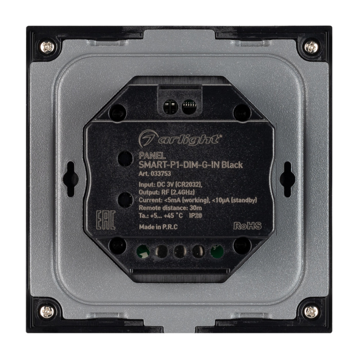 Панель SMART-P1-DIM-G-IN Black (3V, Rotary, 2.4G) (Arlight, IP20 Пластик, 5 лет) 033753
