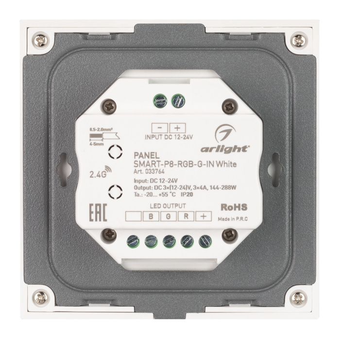 Панель SMART-P8-RGB-G-IN White (12-24V, 3x4A, Rotary, 2.4G) (Arlight, IP20 Пластик, 5 лет) 033764