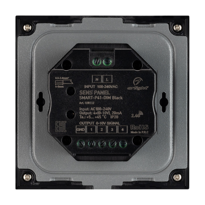 Панель SMART-P34-DIM-IN Black (230V, 0-10V, Sens, 2.4G) (Arlight, IP20 Пластик, 5 лет) 028112