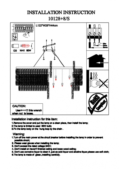 Применяются лампочки с цоколем G9 мощностью 960 Вт, количеством 16 ед. Основной цвет модели 10128+8/S: Прозрачный.