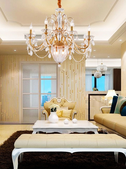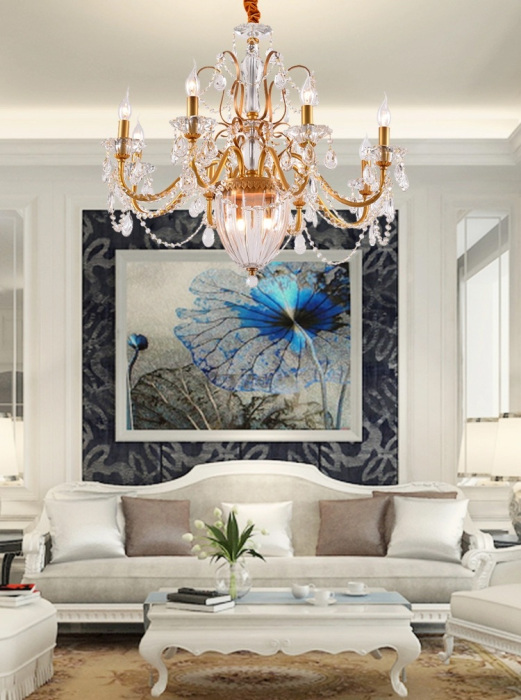 Осветительный прибор выполнен в стиле Барокко. Задействуются лампы с цоколем E14 мощностью 480 Вт, количеством 8 шт. Цвет модели MD10003057-11A+gold: Золотой.