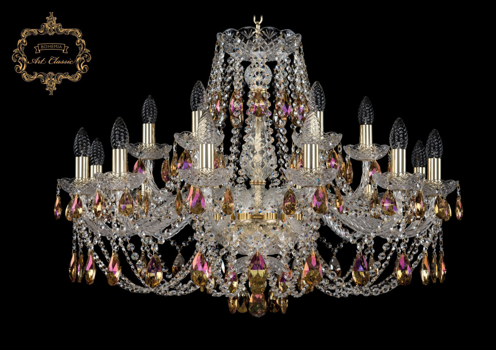 Подвесная люстра 11.21 11.21.12+6.300.Gd.Sp.K777 Art Classic хрустальная, рожковая, в виде свечей, чешская