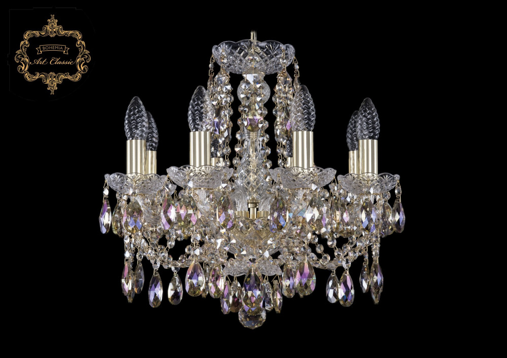 Подвесная люстра 11.21 11.21.8.141.Gd.Sp.R801 Art Classic хрустальная, рожковая, в виде свечей, чешская