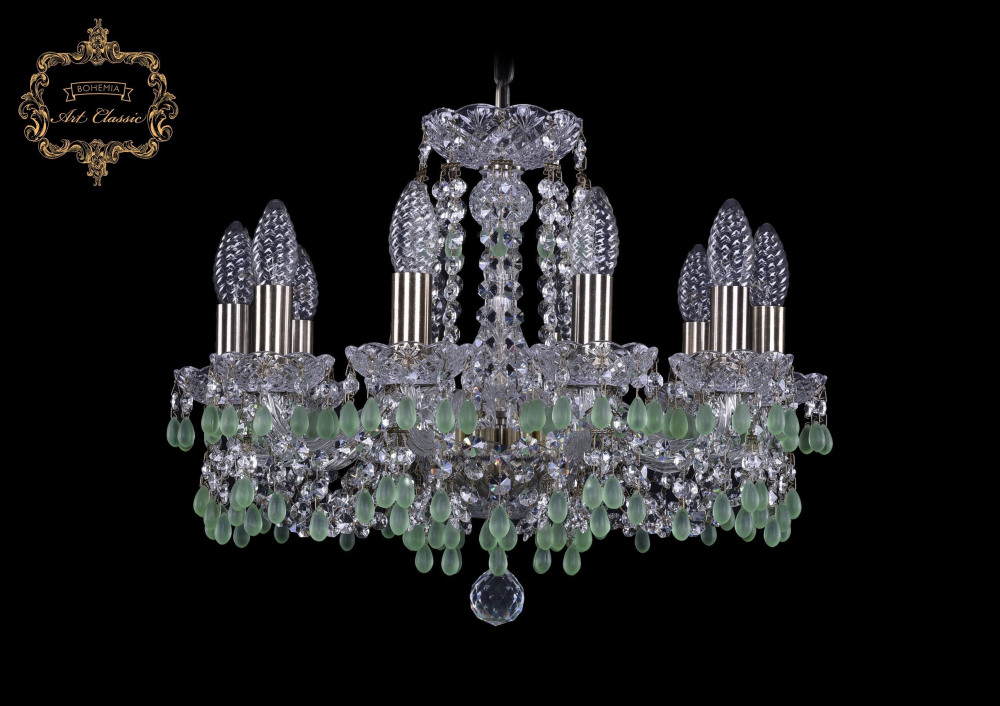 Подвесная люстра 11.24 11.24.10.165.Br.V5001 Art Classic зеленая, хрустальная, рожковая, чешская