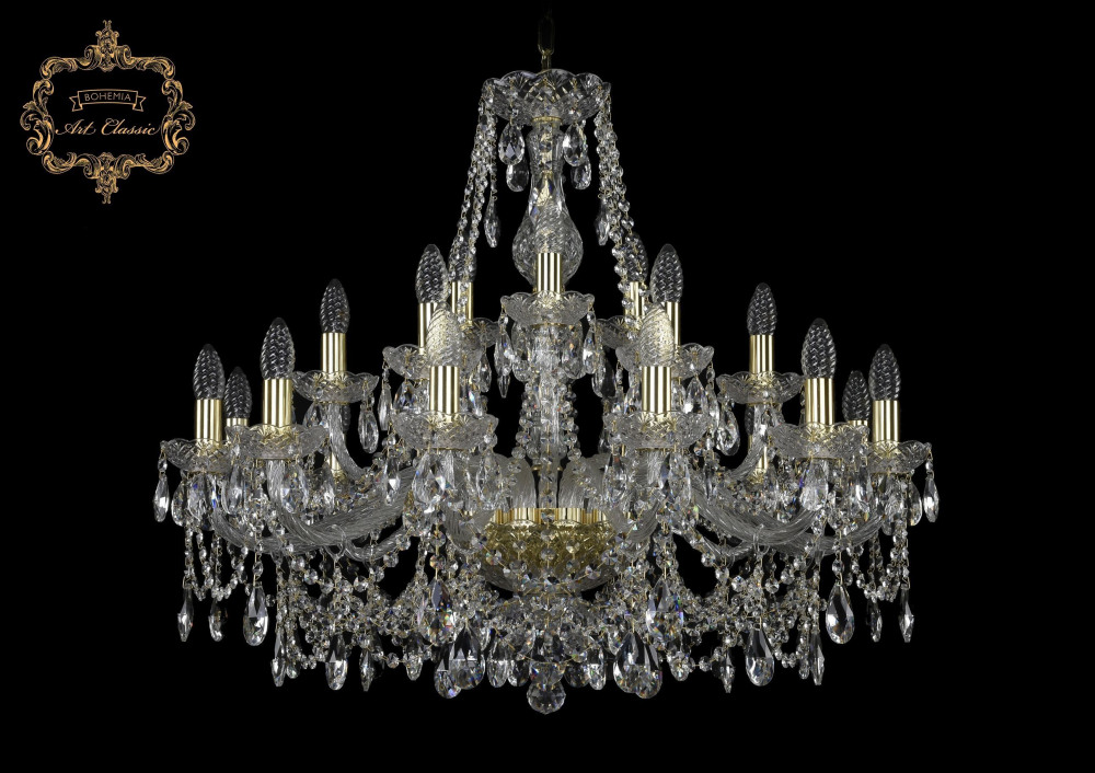 Подвесная люстра 11.25 11.25.12+6+3.300.Gd.Sp Art Classic хрустальная, рожковая, чешская