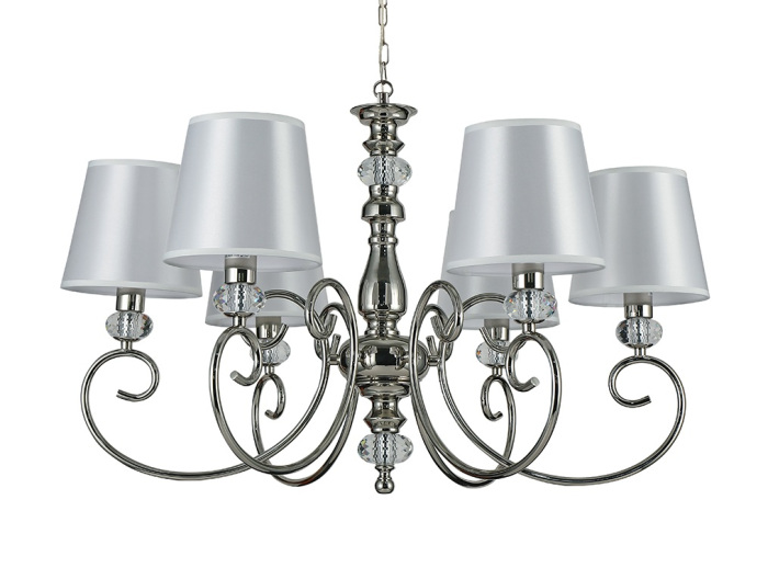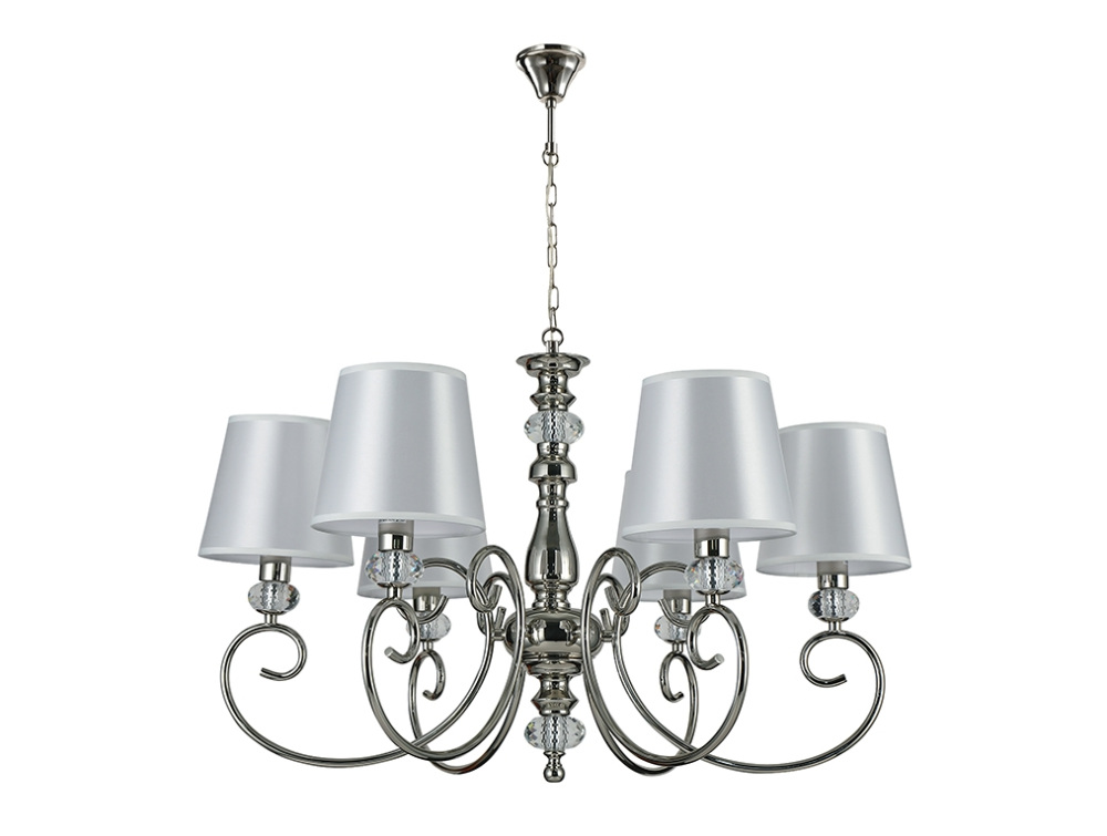 Осветительный прибор создан в стиле Классический. Используются лампы цоколя E14 мощностью 40 Вт, в количестве 6 шт. Основной цвет модели 1206/C nickel: Белый.