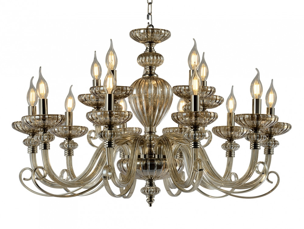 Осветительный прибор сделан в стиле Модерн. Подходят лампочки с цоколем E14 мощностью 600 Вт, количеством 15 ед. Основной цвет модели 12815/C cognac: Никель,Янтарный.