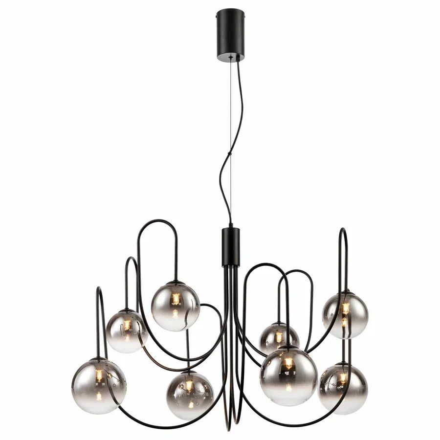 Осветительный прибор разработан в стиле Модерн. Используются лампочки цоколя G9 мощностью 320 Вт, в количестве 8 ед.